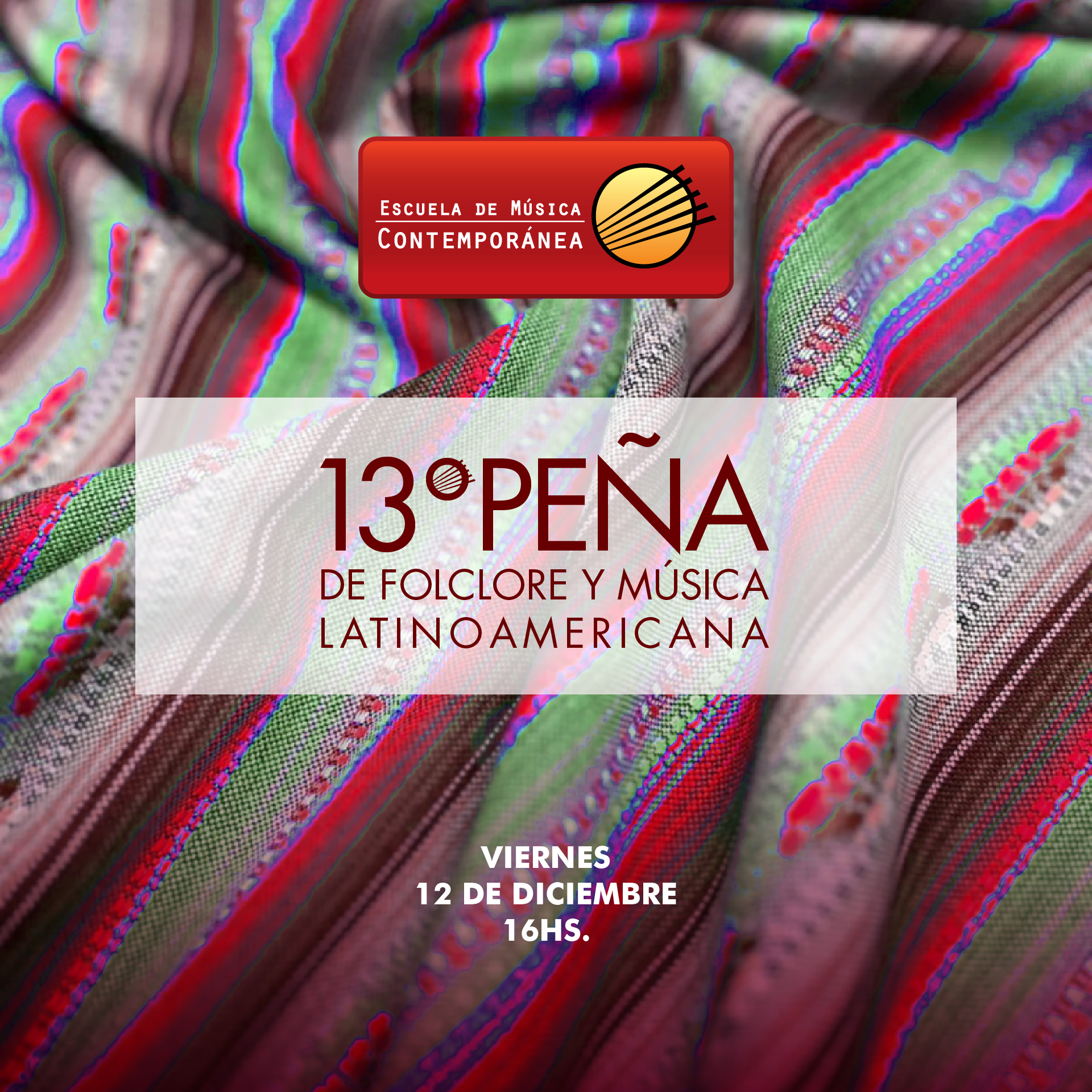 Atención alumnos e interesados. Los invitamos a participar de la 13va Peña de Folclore y Música Latinoamericana de la EMC, el viernes 12 de diciembre a las 16hs en nuestro espacio multieventos.